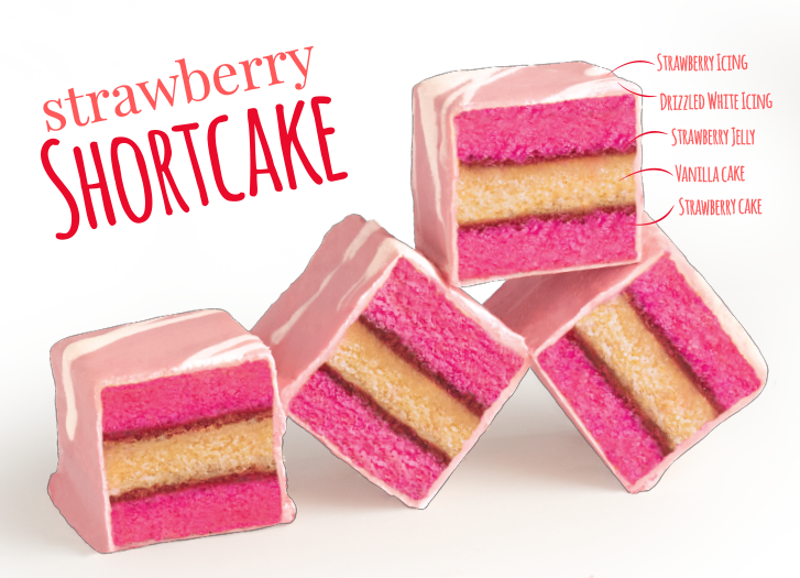 Spring has sprung and so too has our springtime indulgence: the Strawberry Shortcake Cakebite.  Like that familiar Fall story, the Native Americans introduced the colonists to the sweet magic of mixing strawberries and cornmeal and the very American strawberry shortcake was born.  Spring forward 500 years and savor our spin on an American Classic:  Strawberry Shortcake Cakebites.  Sweet strawberry Jelly, in between moist layers of strawberry and vanilla cake, enrobed in a lovely strawberry coating.   Like Spring itself, our Strawberry Shortcakes are fleeting and only available while in season.  Spring is a time of new life and new loves, so live it up and love up a Cakebite.