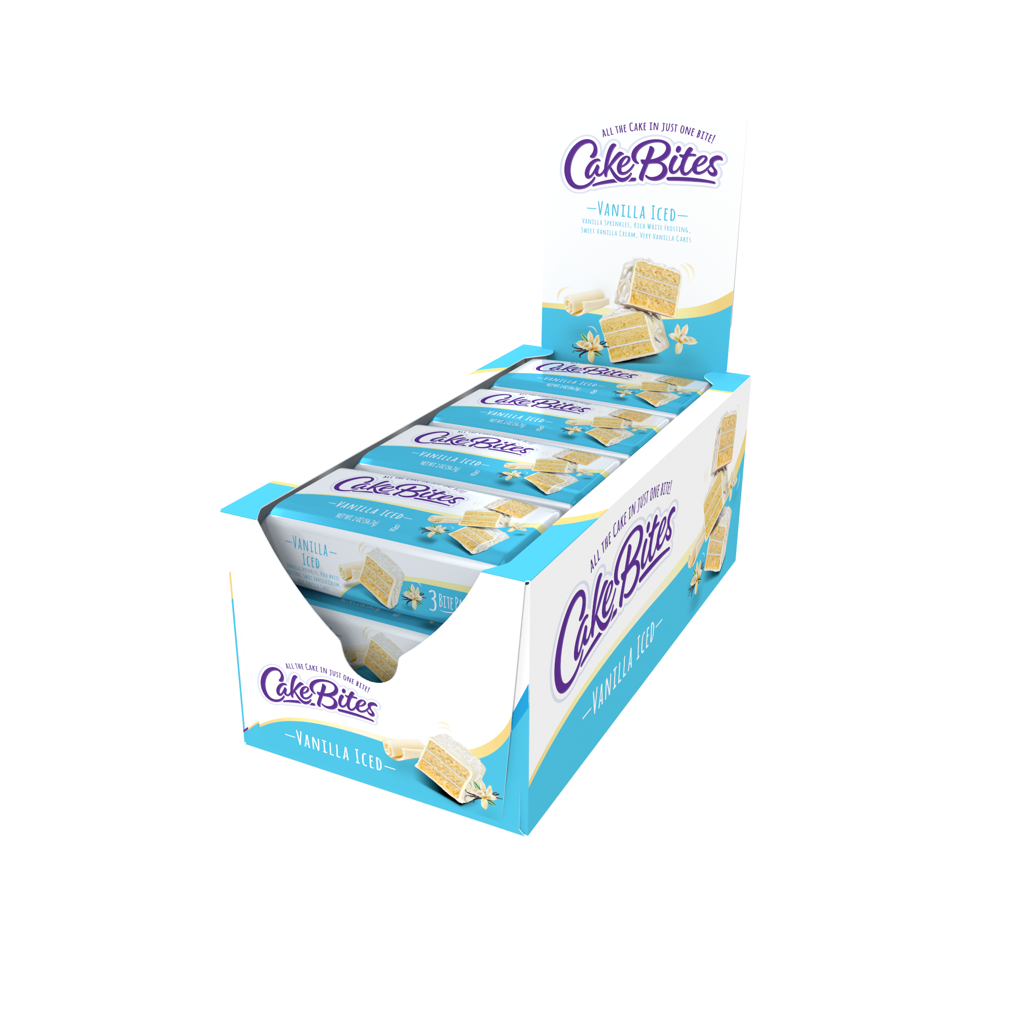 Behold, VANILLA! No longer the overlooked cousin of chocolate, vanilla has come into its own with our new Vanilla Iced Cakebite. A moist vanilla cake, layered with a sweet vanilla cream, covered in icing and topped with vanilla sprinkles. Our edible, bite-sized celebration of the second most expensive spice in the world (saffron is #1, but our bakers can only do so much with saffron). First grown in the Americas by the Mayans, Vanilla has been in high demand since the 1500s. We know what you’re thinking, how will I share these with other people?! Do not fret, there are 3 pieces in each on-the-go package! Share and celebrate a flavor enjoyed as an American spice celebrated around the world for over 500 years; indulge in our Vanilla Iced Cakebites.!