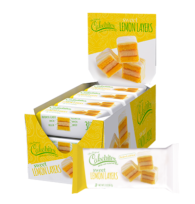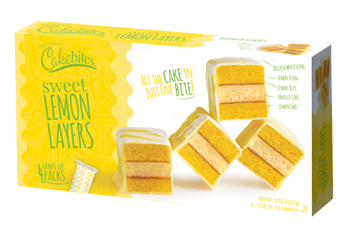 “When life gives you lemons, make lemonade.” When that inspirational advice was first offered in 1915, lemonade may have been a culinary challenge, but we have come a long way. One hundred years of technological progress has brought us the indulgent masterpiece: Sweet Lemon Layers; lemon and vanilla cake layered with jellied lemon zest, enrobed in a sweet lemony coating. Springtime anyone? Blue skies, green grass and an indulgent, sweet lemony Cakebite. Another famous proverb claims “you can’t eat your cake and have it too,” but it turns out you can as there are three bite-sized Sweet Lemon Layers in every on-the-go package. Go ahead and eat one, there are two more. Enjoy Spring, indulge in a Sweet Lemon Layer Cakebite.